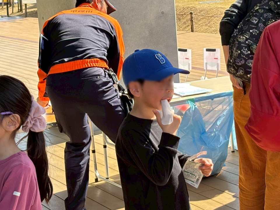 【公衆電話の説明】 【備蓄食の試食】