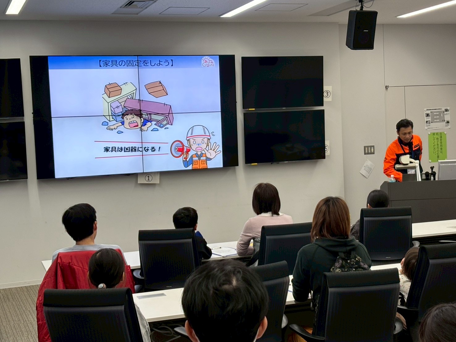 災害発生時に小学生とその保護者が一緒に体験型のプログラムを通じて、災害時においての初動対応、避難行動、生活上の工夫や助け合いの重要性について楽しみながら学び、家庭における防災意識の向上と災害時における親子の共通認識を図りました。2 日時
