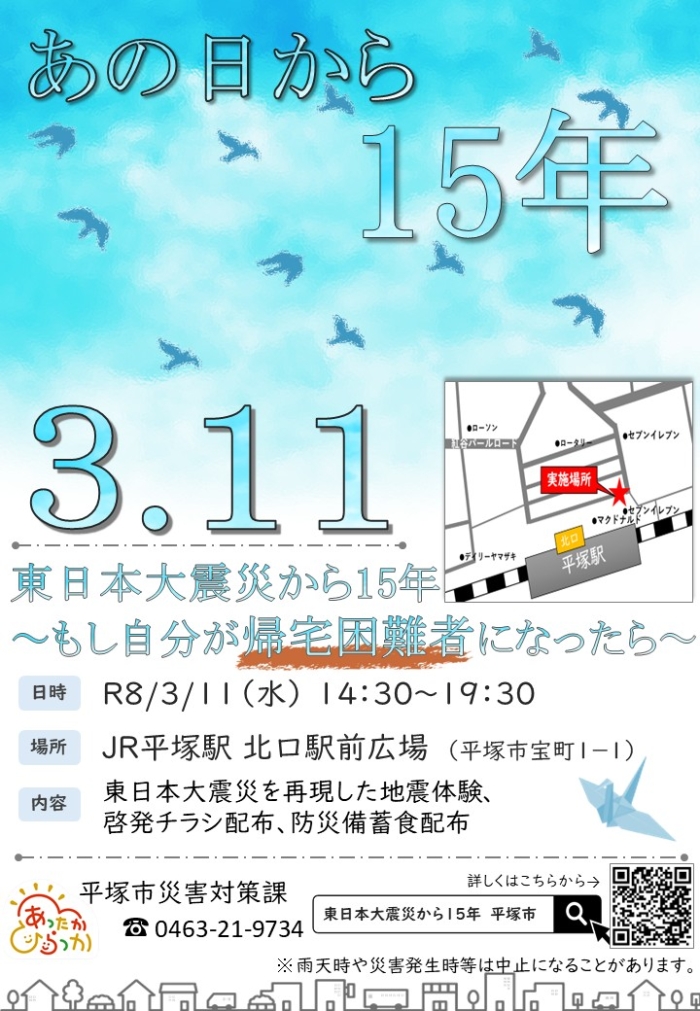 「東日本大震災から15年」地震防災キャンペーンを行います。