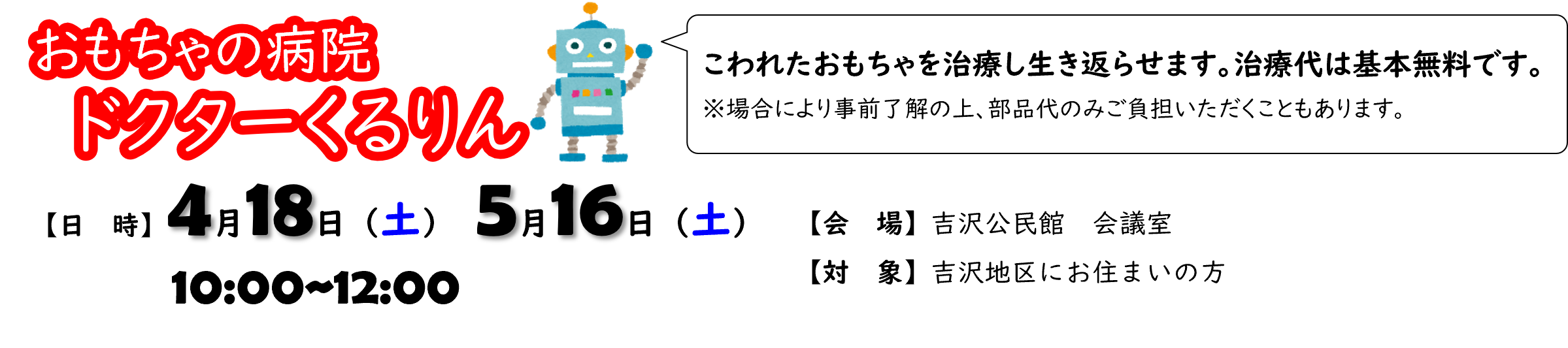 おもちゃの病院ドクターくるりん【4月18日(土曜日)、5月16日(土曜日)】