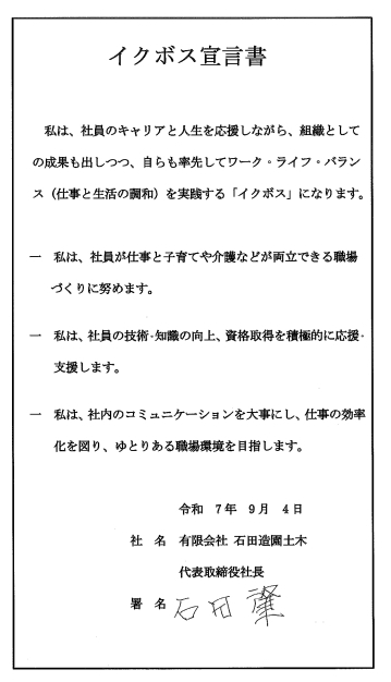 「有限会社 石田造園土木」石田 肇 代表取締役社長のイクボス宣言
