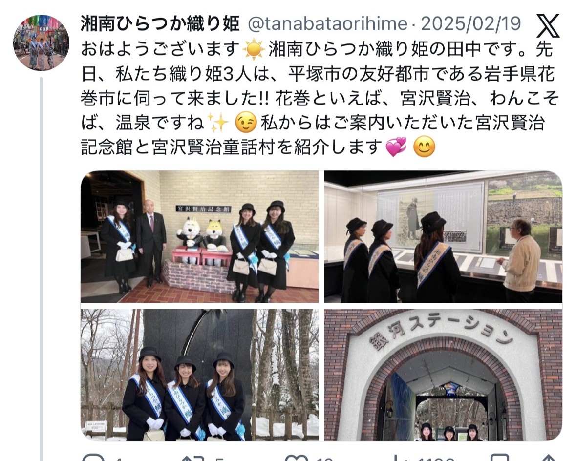 ※織り姫には公務の報告及び平塚市内のおすすめスポットなどのPRを情報発信してもらいます。