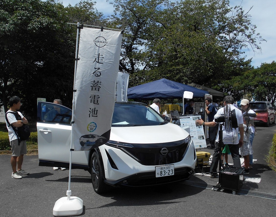 7月27日(日曜日)に開催しました「ひらつか環境フェア2025」にて、電気自動車「日産アリア」及び「日産サクラ」を使用した給電デモンストレーション及びプロパイロットパーキング体験を実施しました。多くの市民の方々に体験していただくことができました。