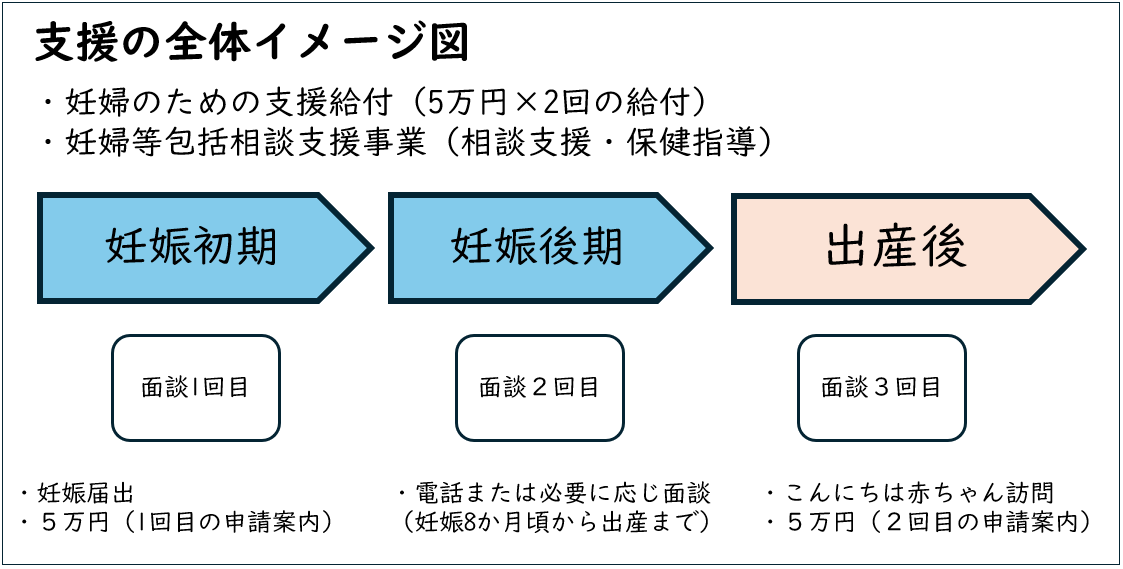 - 妊婦支援給付金1回目 妊婦1人あたり「5万円」を支給