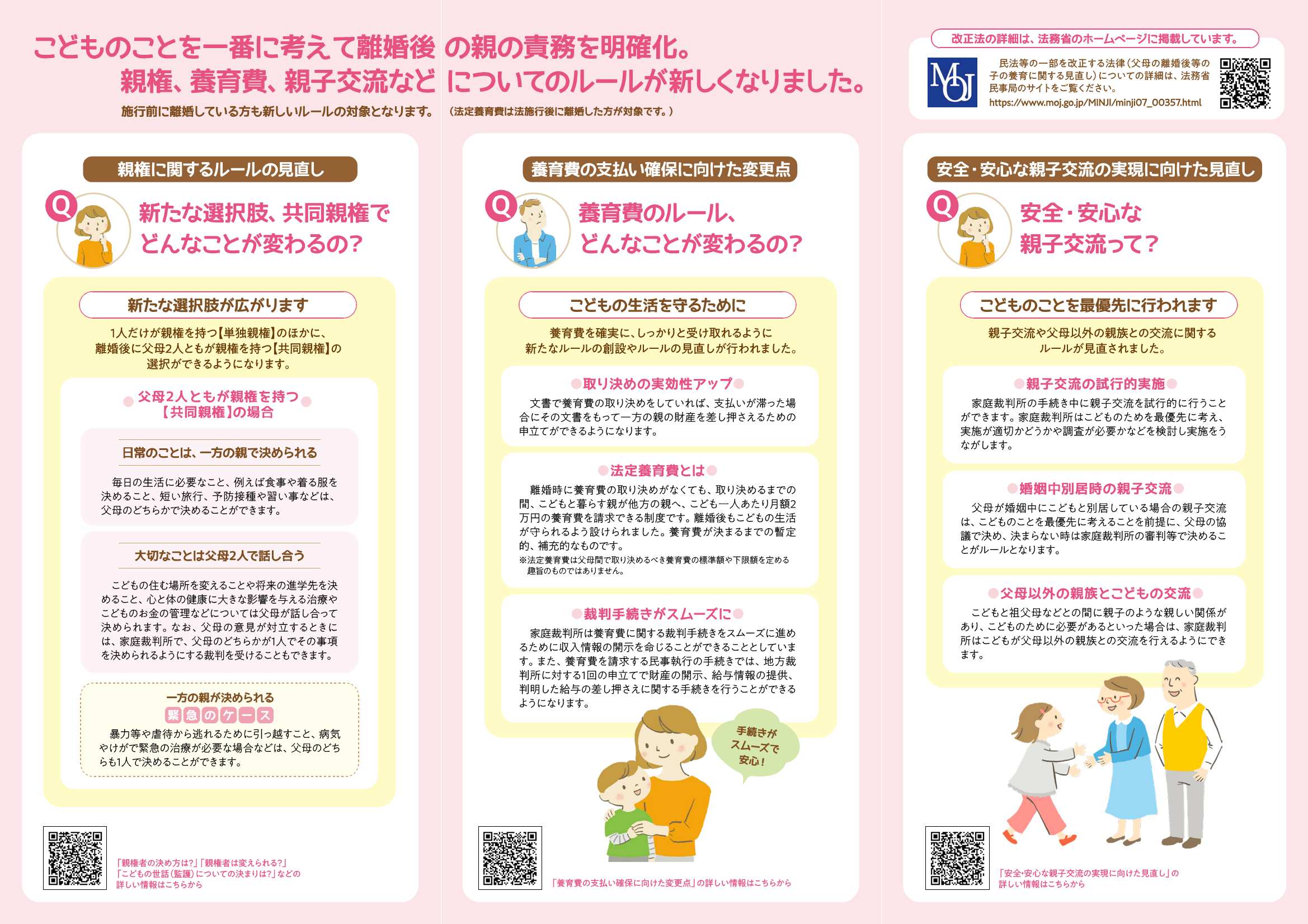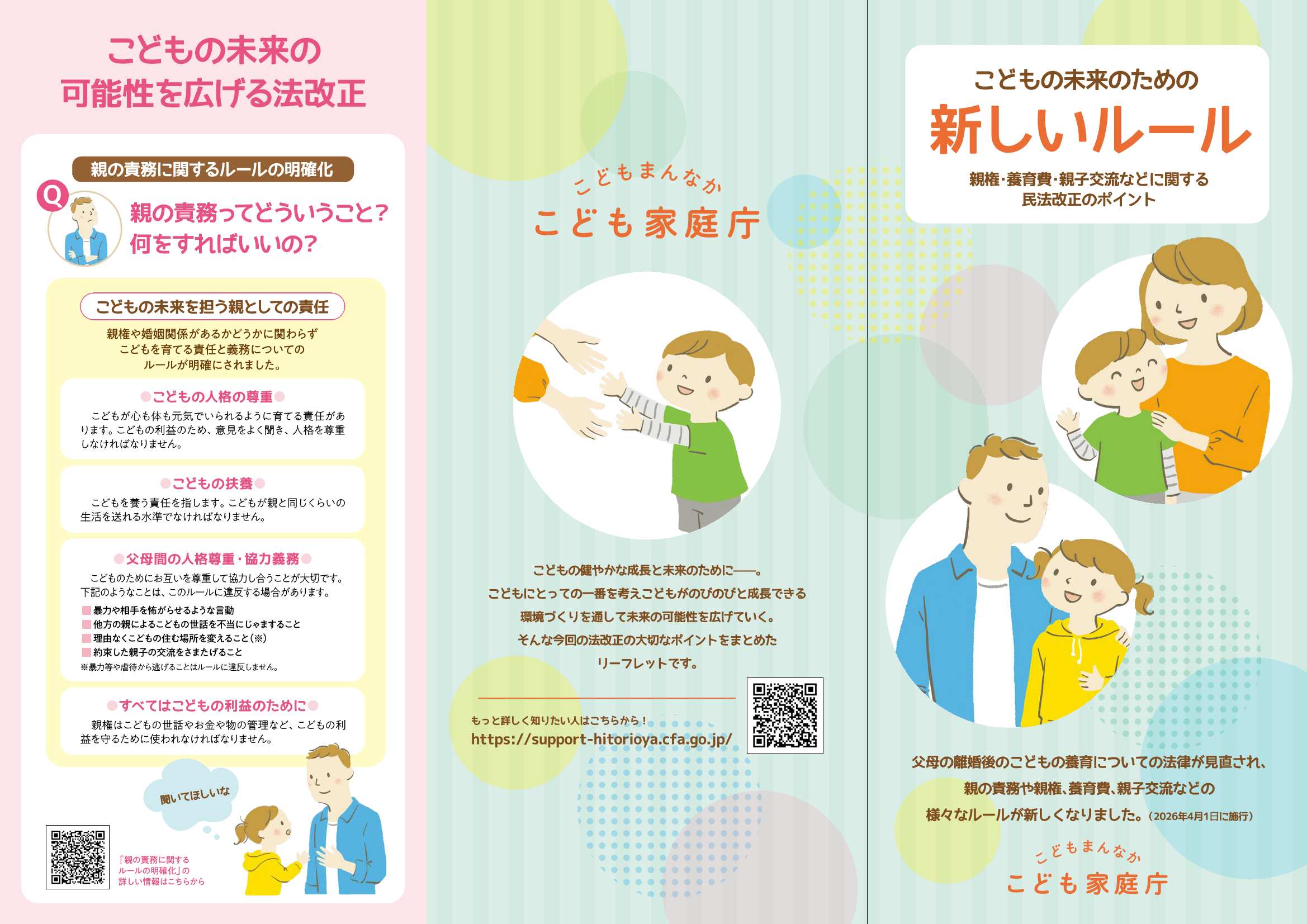- こども家庭庁作成リーフレット「こどもの未来のための新しいルール(親権・養育費・親子交流などに関する民法改正のポイント」(PDF:2.82MB)