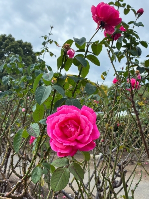 園内のバラは、見頃が続いています。本日は晴天に恵まれ、バラを楽しむ人が多く見られました。