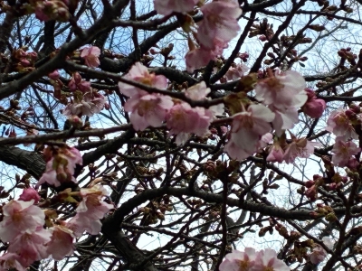 園内の河津桜や玉縄桜は見頃が続いています。「こどもクリニックさいとう」みんなの広場付近の大島桜は、蕾がほころび始め、開花が近そうです。