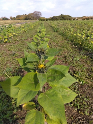 9月下旬に種をまいたひまわりが想定より遅れておりますが、