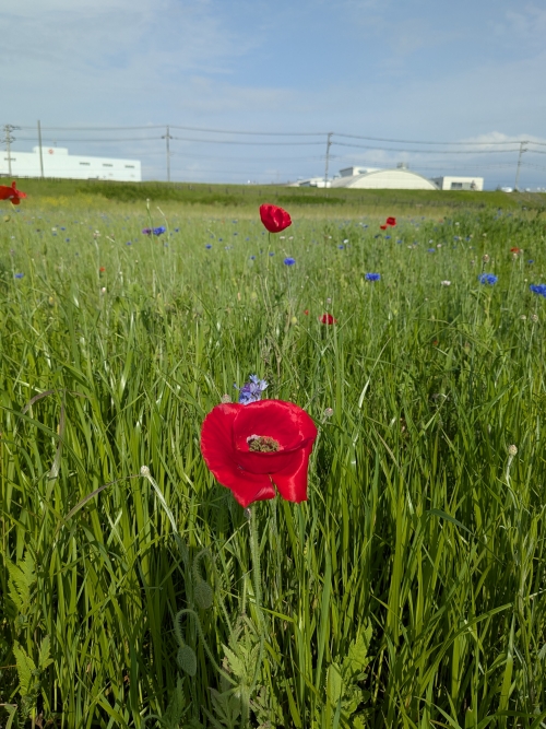 雨上がりのさわやかな風が吹く花畑で、色とりどりのポピーやヤグルマギクを楽しそうに摘み取ったり、おしゃべりしながら散歩する人など、花畑に来た人が思い思いの時間を過ごされていたのが印象的でした!