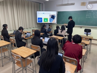 初めての交流ということで、今回はお互いの学校生活や文化等について紹介。それぞれの生徒が英語でプレゼンテーションを行いました。