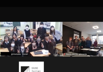 平塚市内にある神奈川県立平塚中等教育学校とカウナス市のサウレギムナジウムの生徒によるオンライン交流が行われました。両校が交流の機会を持つのは初めてで、15~16歳の生徒が所属する学年同士がオンラインミーティングを通じて英語でコミュニケーションを取りました。
