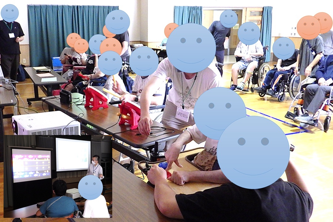 市内の各施設に出向いて2時間程度、「太鼓の達人」ほか、操作が簡単なゲームを体験する場を設けています。ゲームをした経験がない方でもスタッフが最初から丁寧に操作を教えています。
