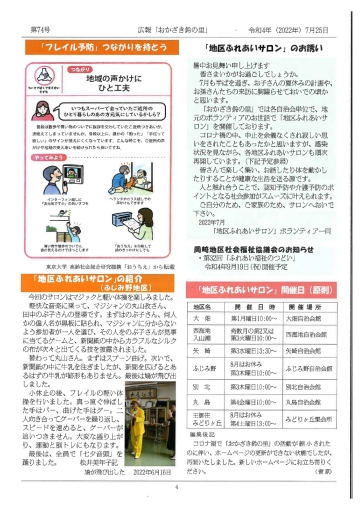 平塚市では神奈川県と東京大学と一緒にフレイルチェックの効果検証を行っています。平塚市にフレイルサポーターが100名強おりますが、岡崎地区では、庁内福祉村の「おかざき鈴の里」のボランティアの中で7名がサポーターとしても登録し、まとまっているので、市の協力を得ながら、他地区にも参加する事はもとより、岡崎だけの測定会も行っています。地域のみんなが健康寿命を延し、元気に過ごせるお手伝いが出来ればと活動しております。 活動として岡崎地区内の7自治会館や集会所を利用し、1地区10~20人位を、半年~1年に一度測定し、前に測定したのと見比べております。その方の健康を見守ってフレイル予防していき元気に心豊かに過ごして頂くことを願って令和4年から実施しております。活動頻度