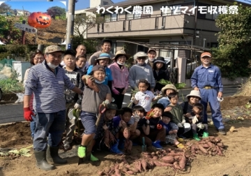 - 育てた野菜はサツマイモ、里芋、空豆、スナップエンドウ、ジャガイモなど、スナップエンドウ、空豆は会員が自宅で種から育て、畑に皆で植えます。子どもたちは野菜の育っていく姿に興味と愛着を持ってくれました。