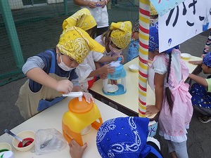 つばめの日に、かき氷やさんが開店!自分達で作ったかき氷は特別おいしかったね