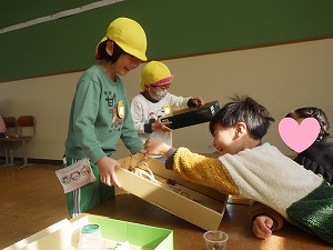 1年生の作ったおもちゃで遊びました「ぼくも作ってみたい!」