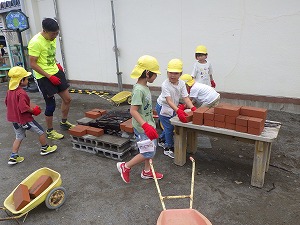 「みんなでバーベキューがしたい!」レンガや網を組み立てて、バーベキュー台を作りました
