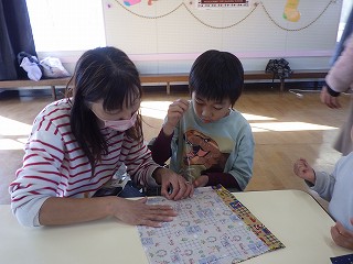 5年生が、幼稚園生が楽しめる遊びを考えてくれました。5年生のたくさんの優しさを受けとることができました!