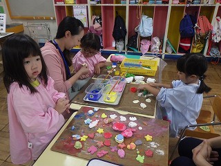 紙粘土でクッキー作り おいしそう!
