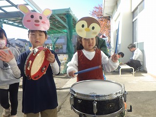 お楽しみ会での職員と保護者の出し物をきっかけに、楽器遊びが始まりました