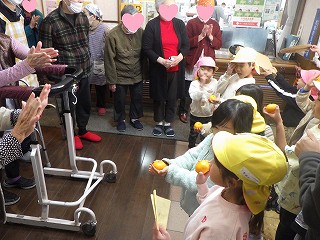 敬老の日に手紙を届けに行ったり、クリスマス会に呼んでいただいたりしました。元気いっぱいの子ども達をいつも温かく迎えてくださり、「可愛いね」「こちらこそありがとう」と声をかけてくださります。
