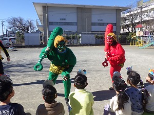 節分の日に、隣の伸生会の職員さんと園長先生が鬼になって現れました!