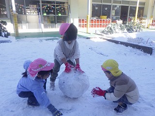 「大きな雪だるま作ろう!」みんなで協力して雪を転がします