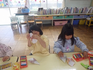 1年間いろいろな場面で優しくしてくれたり教えてくれたりした年長つばめ組さん。そんなつばめさん達に「ありがとうを伝えたい!」と年中組の子ども達が相談しました。どんなことをしたら嬉しいかな、喜んでくれるかな、そんな思いを胸に準備をしていた子ども達です。