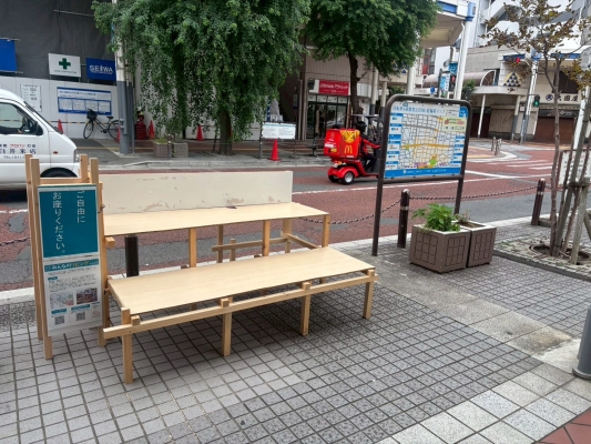 - パークレット(大型ベンチ)の設置(実施期間(1)、(2))