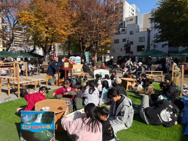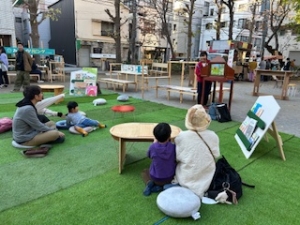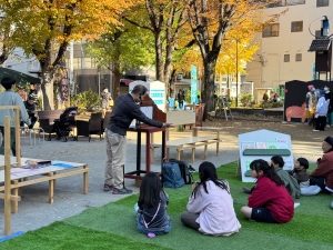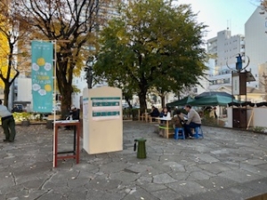 11月30日(日曜日)に大門通りで開催される大門市にあわせ、公園内に将来の公園活用のイメージにつながる次のゾーンを創出し、参加者に体験していただき意見を聴取しました。