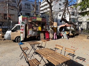 - 飲食・休憩ゾーン・・・大門市や公園内で購入したものの食事や来街者が休憩するゾーンです。