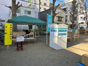 また、大門市との繋がりを創出するため、スタンプラリー(景品あり)の実施や、道路に机やテーブルを設置しました。
