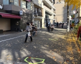 ↓社会実験当日は明石町会のハロウィン企画の後に新宿公園でアンケート調査を実施しました。