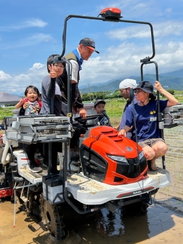 手植えにより田植えを体験していただくほか、田植え機による田植え作業を間近で見学できます。田んぼの泥の感触を五感で楽しみながら、昔の田植えと現在の田植えを感じてください。