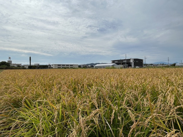 体験前の田んぼの様子。稲穂が黄金色に輝いています...!