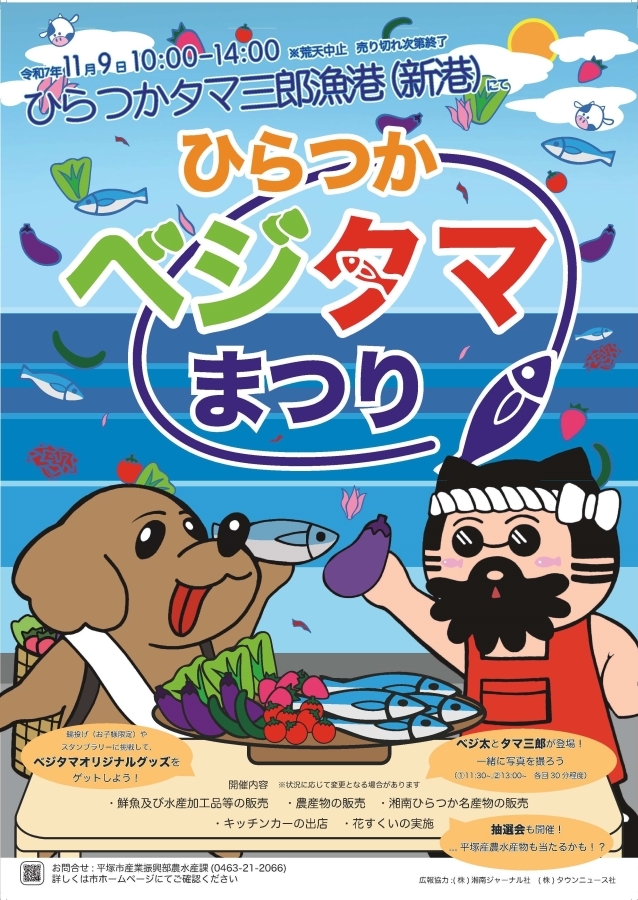 海や川、里山といった自然に満ちた本市で収穫、生産される農水産物の魅力を広く発信することを目的に、昨年度まで「湘南ひらつか魚まつり」として開催していたイベントに今年度は農業部門を加え「ひらつかベジタマまつり」として開催します!