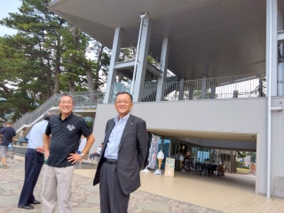 令和6年7月に、友好都市の静岡県伊豆市土肥にオープンした、松原公園津波避難複合施設「テラッセ オレンジ トイ」を視察しました。