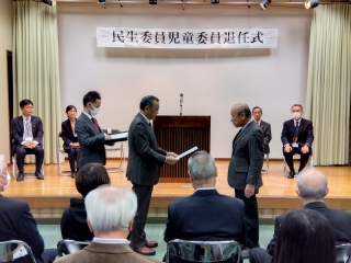 11月27日(木曜日)に勤労会館にて民生委員児童委員退任式を、12月1日(月曜日)に中央公民館にて民生委員児童委員委嘱式を実施しました。