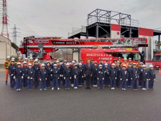 令和7年12月5日からの新型はしご車の運用開始に伴い、消防署大野出張所にて車両紹介を行いました。