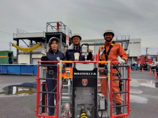 この新車両はバスケットに設置してあるカメラにより、地上ではしごを操作する隊員もカメラ画像で災害状況を確認できるため、より効率的な消防活動が行えるなどの特徴があります。