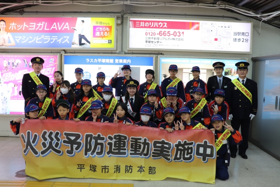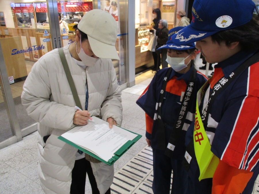 また、同時刻に平塚市少年消防クラブ員が火災予防のPR活動を行いました。