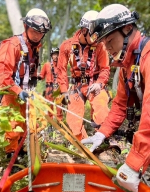 - ハイキングコースからの滑落事故を想定した救出訓練を行い、救助技術の向上を図りました。